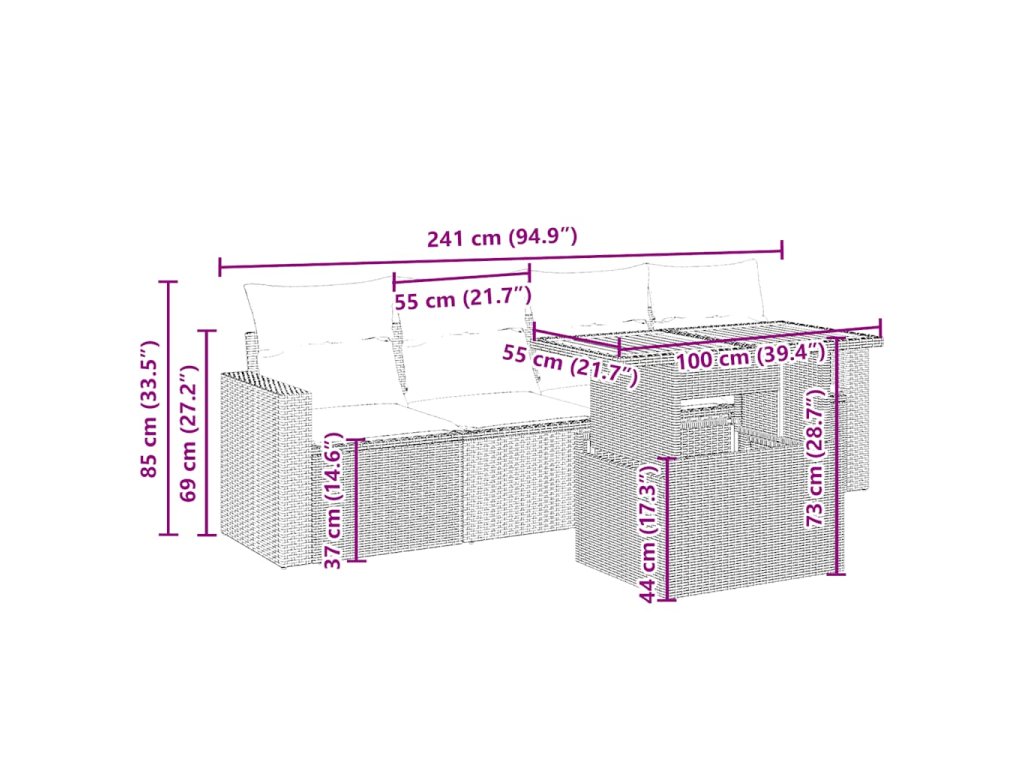Tato zahradní sedací souprava je dokonalým doplňkem vaší zahrady, terasy nebo dvorku a poskytne vám pohodlné a příjemné místo, kde si můžete povídat s rodinou a přáteli nebo jen tak odpočívat a užívat si pobyt venku.