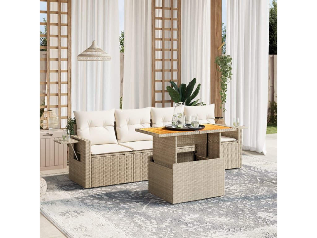 5dílná zahradní sedací souprava s poduškami béžová polyratan 3271632