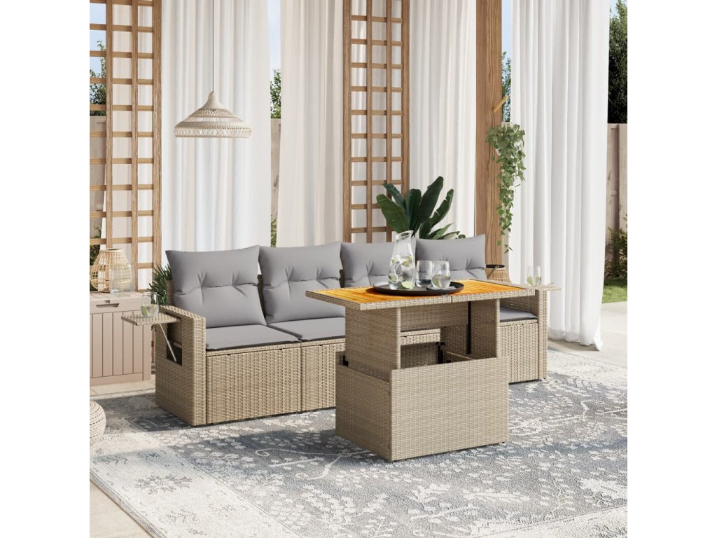 5dílná zahradní sedací souprava s poduškami béžová polyratan 3271633