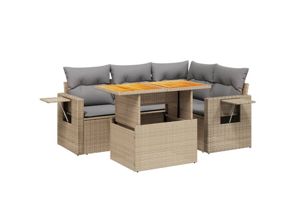 5dílná zahradní sedací souprava s poduškami béžová polyratan 3271738