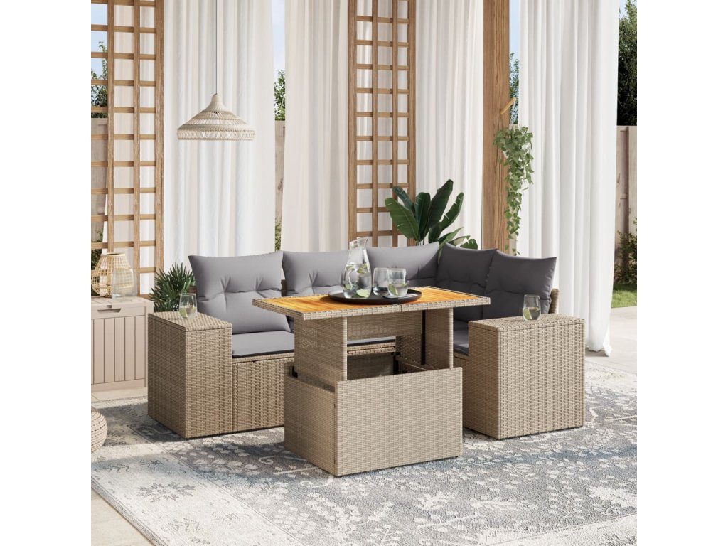 5dílná zahradní sedací souprava s poduškami béžová polyratan 3272620