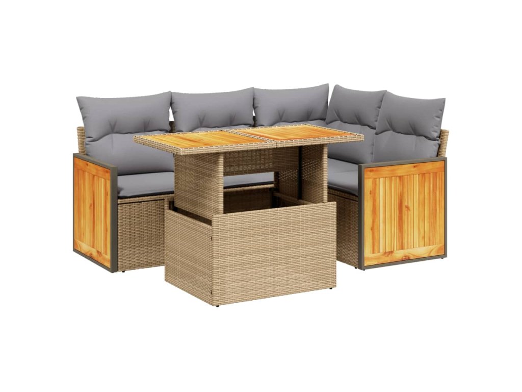 5dílná zahradní sedací souprava s poduškami béžová polyratan 3273943