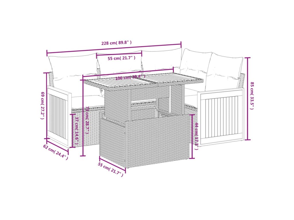 Tato zahradní sedací souprava je dokonalým doplňkem vaší zahrady, terasy nebo dvorku a poskytne vám pohodlné a příjemné místo, kde si můžete povídat s rodinou a přáteli nebo jen tak odpočívat a užívat si pobyt venku.