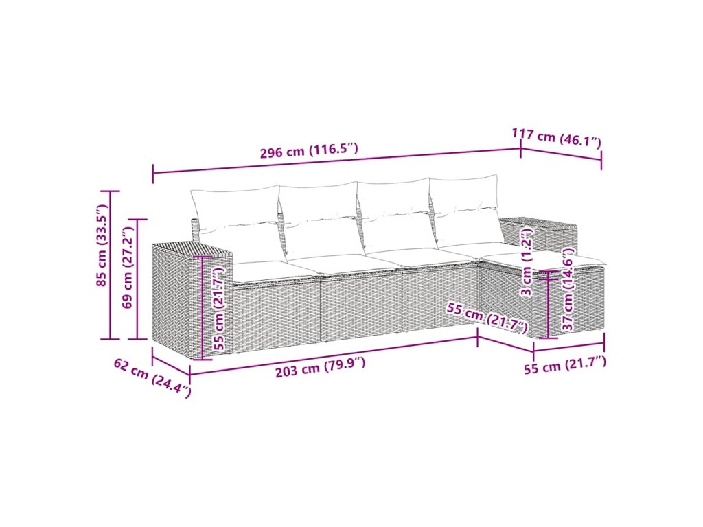 Tato zahradní sedací souprava je dokonalým doplňkem vaší zahrady, terasy nebo dvorku a poskytne vám pohodlné a příjemné místo, kde si můžete povídat s rodinou a přáteli nebo jen tak odpočívat a užívat si pobyt venku.