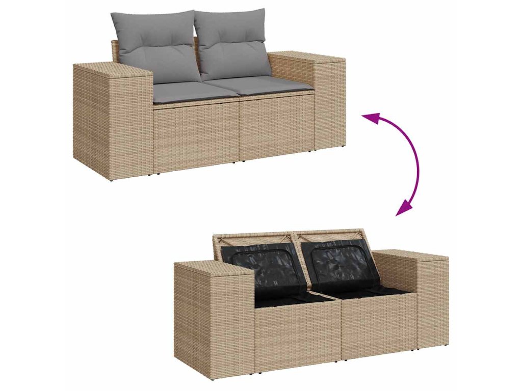 - Úložný prostor s voděodolným vakem: Zahradní nábytek má úložný prostor pod sedákem, který je opatřen voděodolnou vložkou a poslouží vám k ukládání podušek, hraček a dalších věcí. Vnitřní vak lze bezpečně připevnit k venkovnímu nábytku pomocí suchého zipu, což zaručí větší stabilitu.