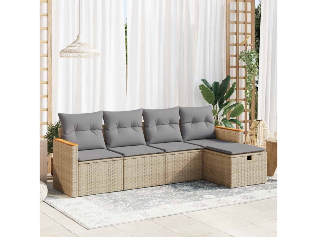 5dílná zahradní sedací souprava s poduškami béžová polyratan 3325902