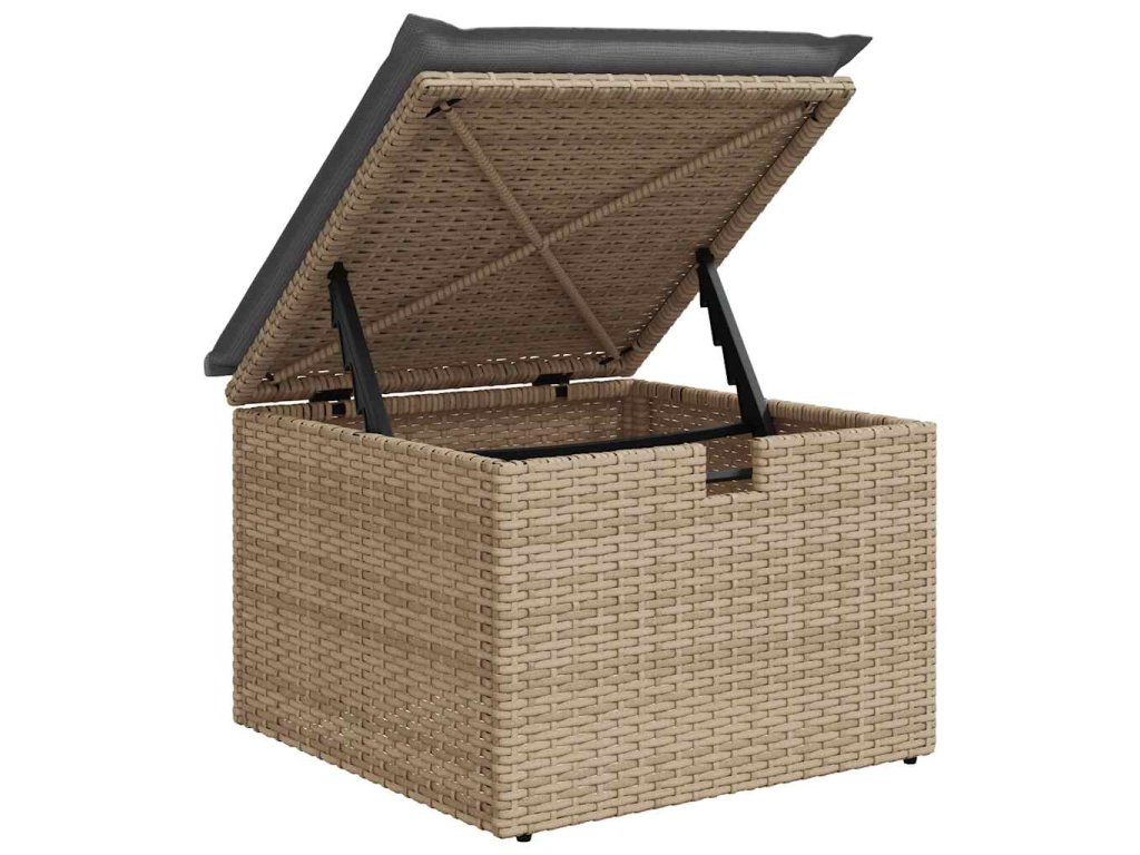 - Úložný prostor s voděodolným vakem: Každý zahradní sedací díl má úložný prostor pod sedákem, který je opatřen voděodolnou vložkou a poslouží vám k ukládání podušek, hraček a dalších věcí. Vnitřní vak má horní kryt a lze jej bezpečně připevnit k sedáku pomocí suchého zipu, což zaručí větší stabilitu.