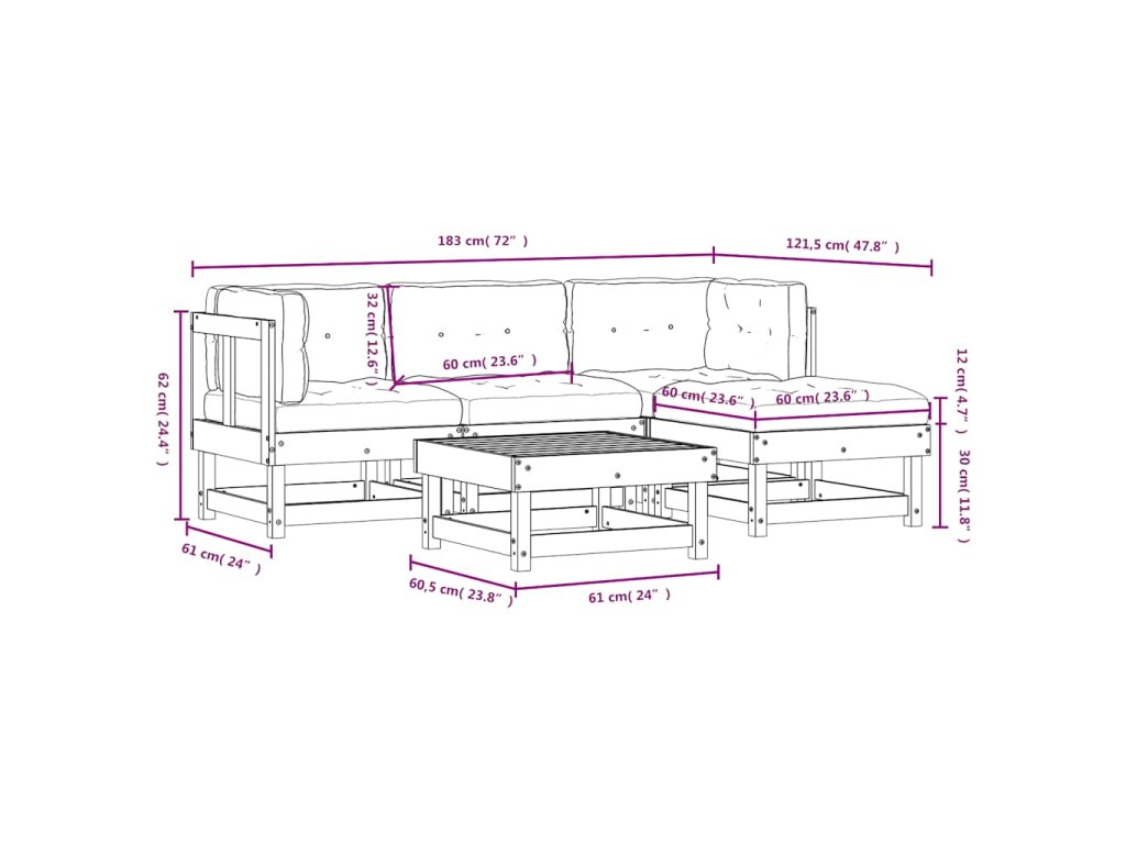 5dílná zahradní sedací souprava s poduškami bílá masivní dřevo 3185788