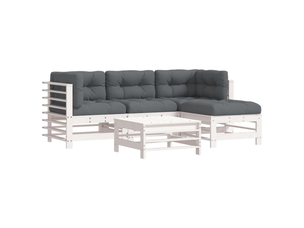 5dílná zahradní sedací souprava s poduškami bílá masivní dřevo 3185802