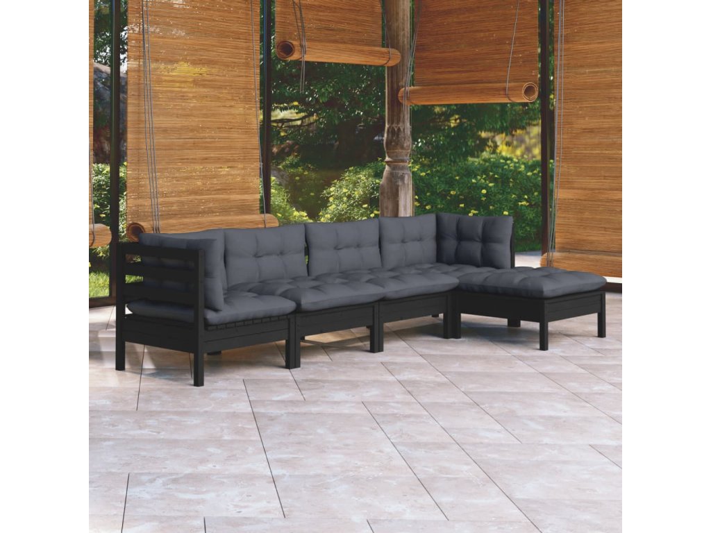 5dílná zahradní sedací souprava s poduškami černá borovice 3096362