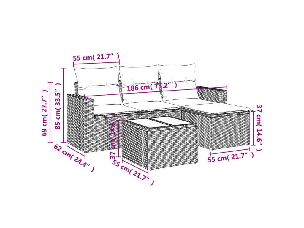 Tato zahradní sedací souprava je dokonalým doplňkem vaší zahrady, terasy nebo dvorku a poskytne vám pohodlné a příjemné místo, kde si můžete povídat s rodinou a přáteli nebo jen tak odpočívat a užívat si pobyt venku.