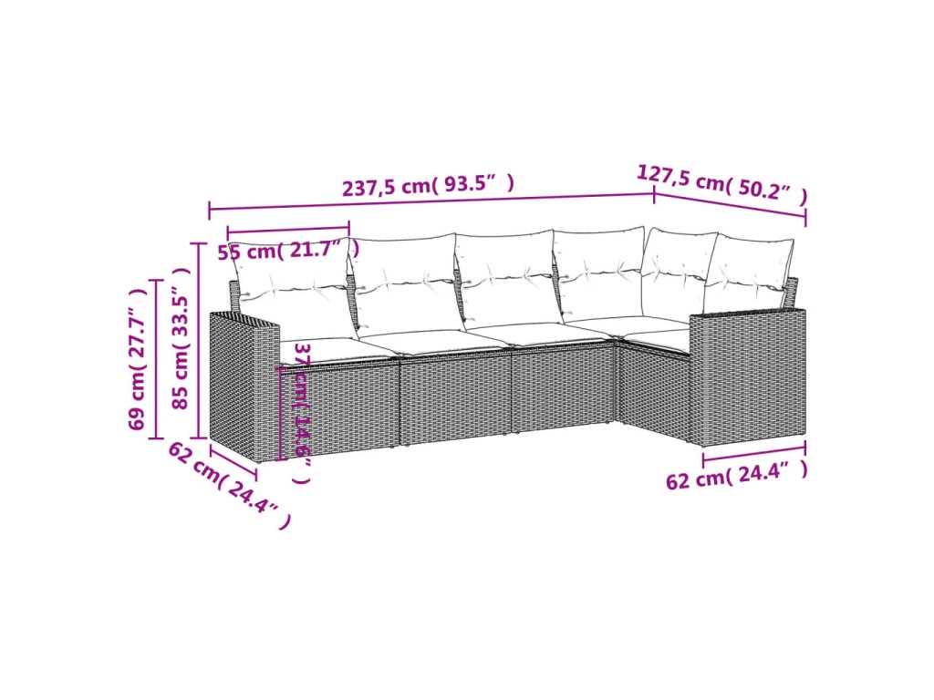 Tato zahradní sedací souprava je dokonalým doplňkem vaší zahrady, terasy nebo dvorku a poskytne vám pohodlné a příjemné místo, kde si můžete povídat s rodinou a přáteli nebo jen tak odpočívat a užívat si pobyt venku.