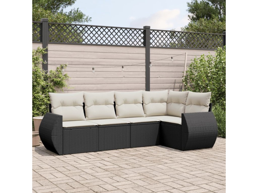 5dílná zahradní sedací souprava s poduškami černá polyratan 3221325