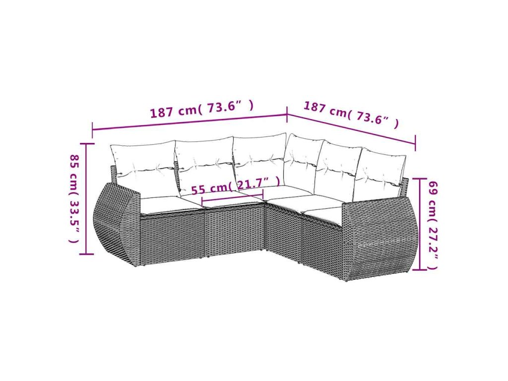 5dílná zahradní sedací souprava s poduškami černá polyratan 3221344