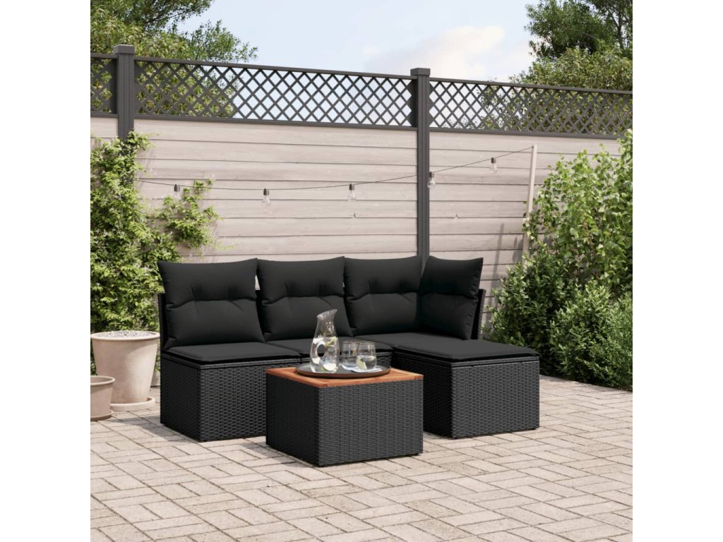 5dílná zahradní sedací souprava s poduškami černá polyratan 3223591