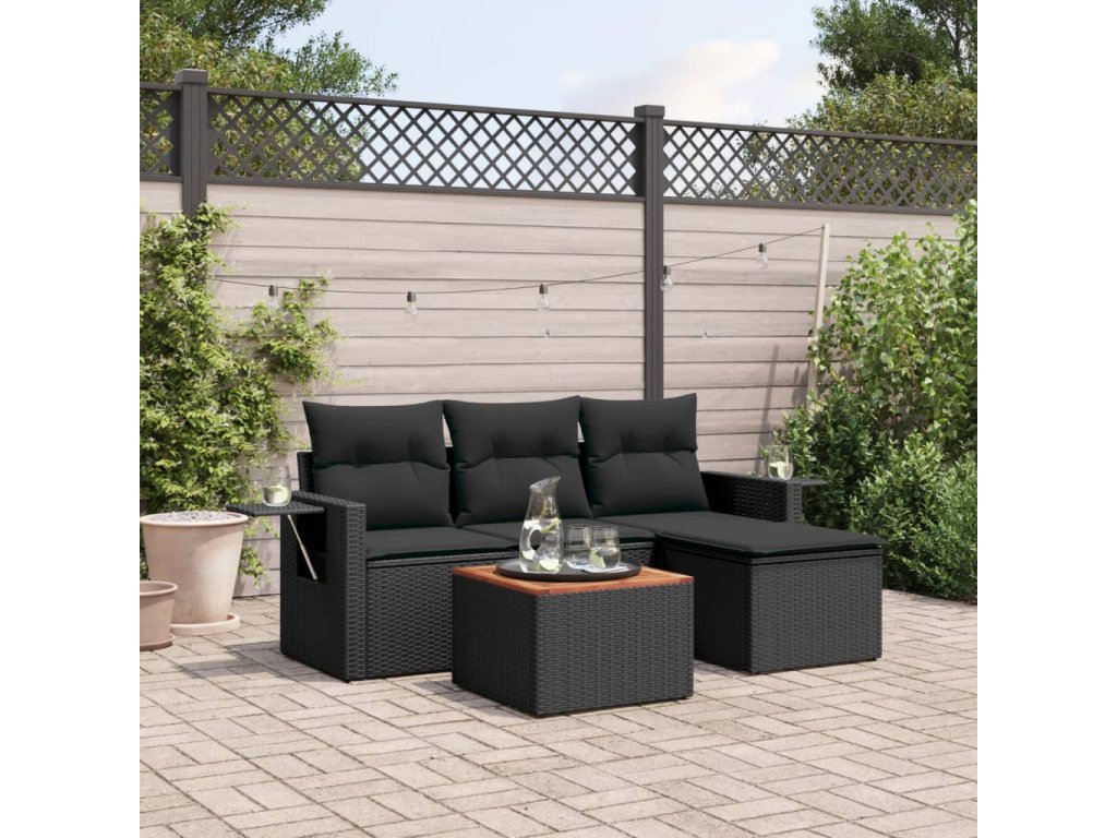 5dílná zahradní sedací souprava s poduškami černá polyratan 3224529