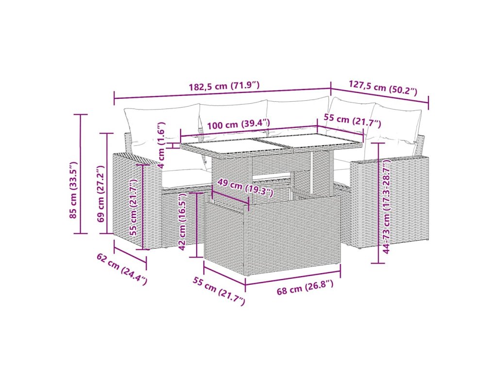 Tato zahradní sedací souprava je dokonalým doplňkem vaší zahrady, terasy nebo dvorku a poskytne vám pohodlné a příjemné místo, kde si můžete povídat s rodinou a přáteli nebo jen tak odpočívat a užívat si pobyt venku.