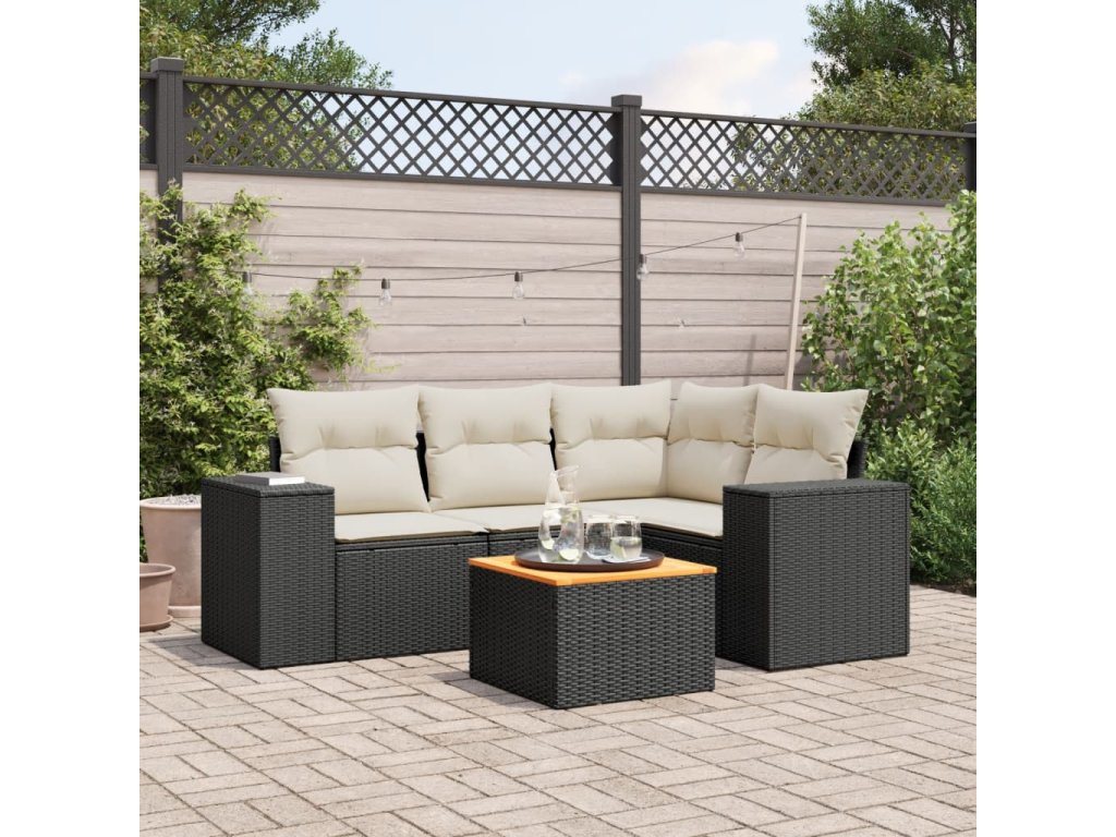 5dílná zahradní sedací souprava s poduškami černá polyratan 3225426
