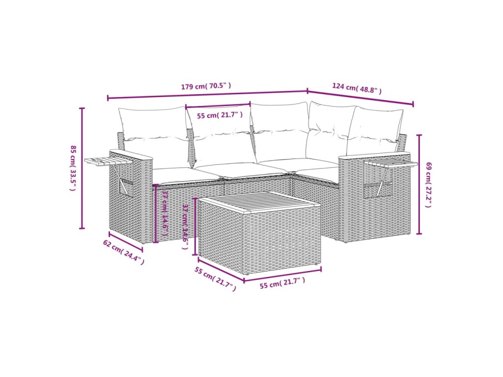 Tato zahradní sedací souprava je dokonalým doplňkem vaší zahrady, terasy nebo dvorku a poskytne vám pohodlné a příjemné místo, kde si můžete povídat s rodinou a přáteli nebo jen tak odpočívat a užívat si pobyt venku.
