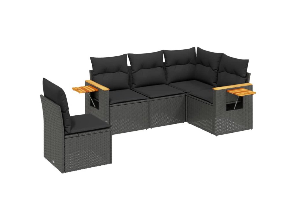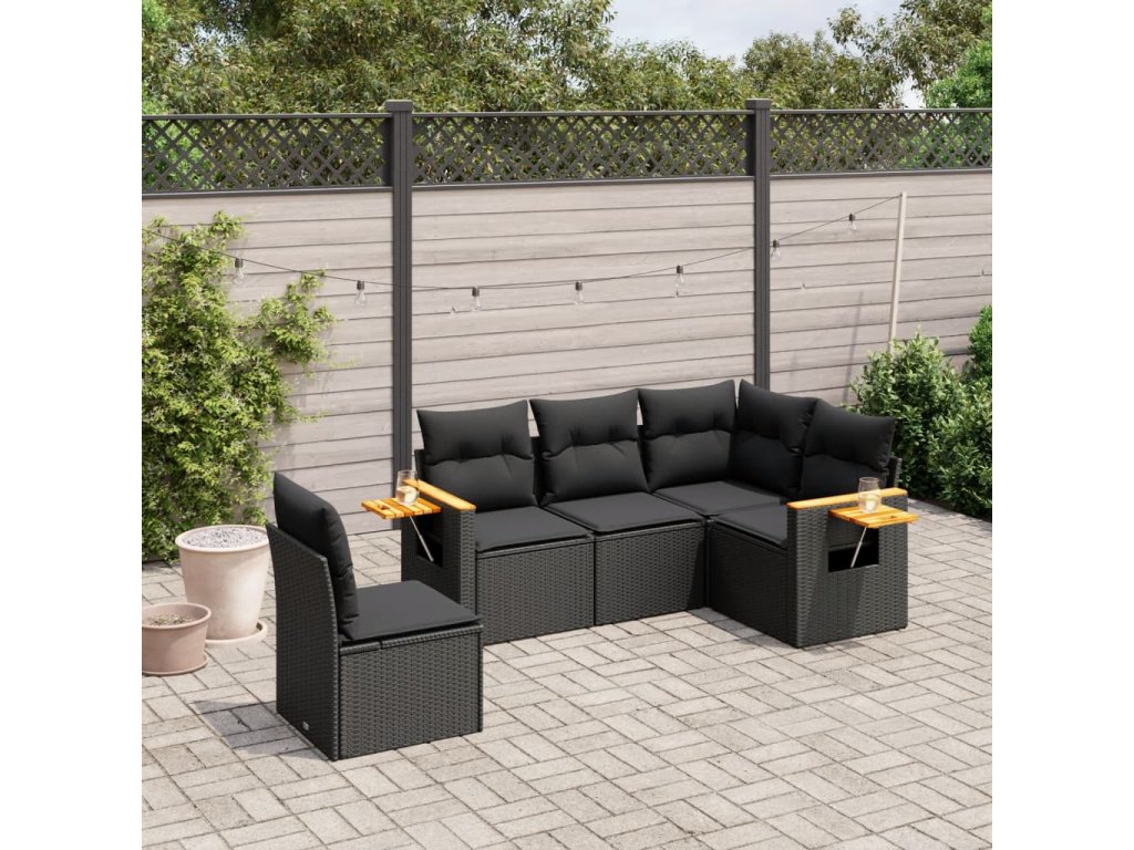 5dílná zahradní sedací souprava s poduškami černá polyratan 3226811