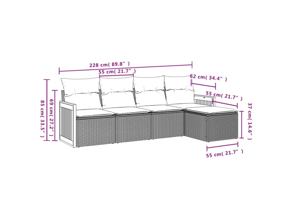 Tato zahradní sedací souprava je dokonalým doplňkem vaší zahrady, terasy nebo dvorku a poskytne vám pohodlné a příjemné místo, kde si můžete povídat s rodinou a přáteli nebo jen tak odpočívat a užívat si pobyt venku.