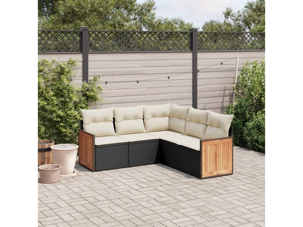 5dílná zahradní sedací souprava s poduškami černá polyratan 3227638