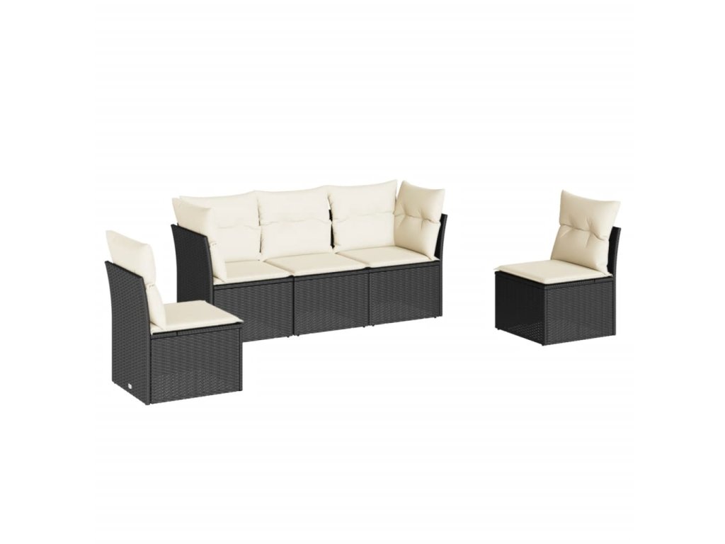 5dílná zahradní sedací souprava s poduškami černá polyratan 3249185