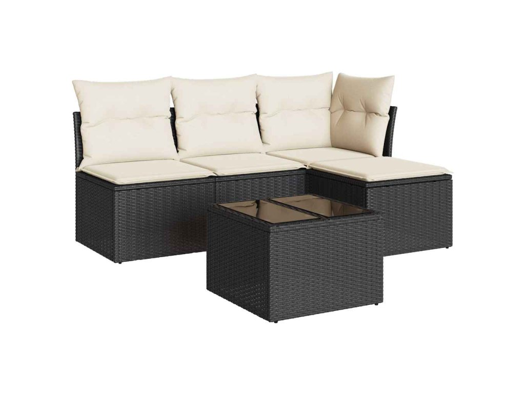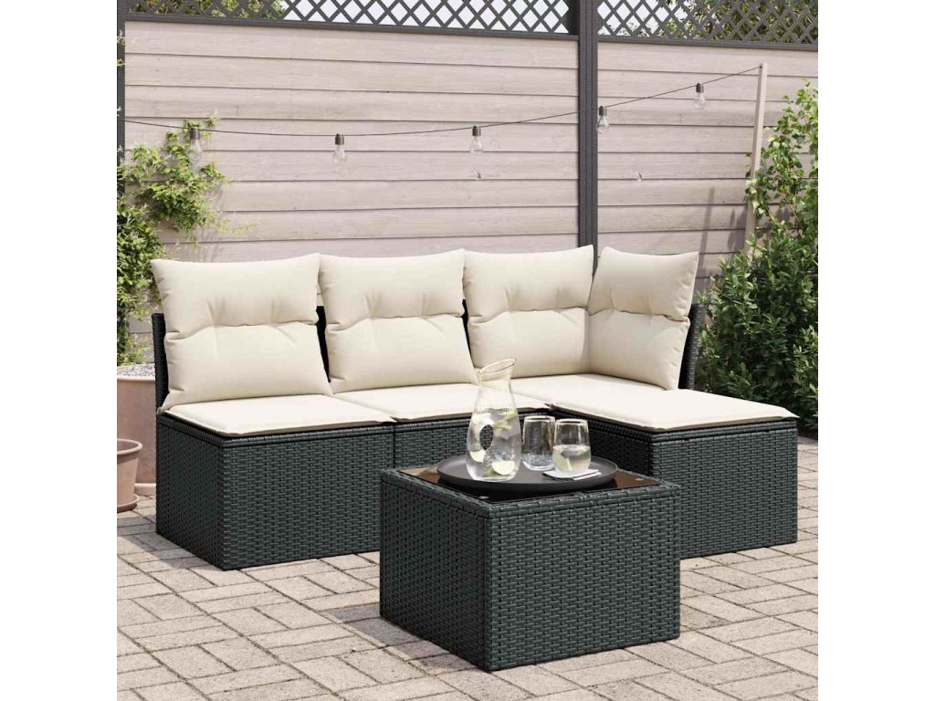 5dílná zahradní sedací souprava s poduškami černá polyratan 3249345