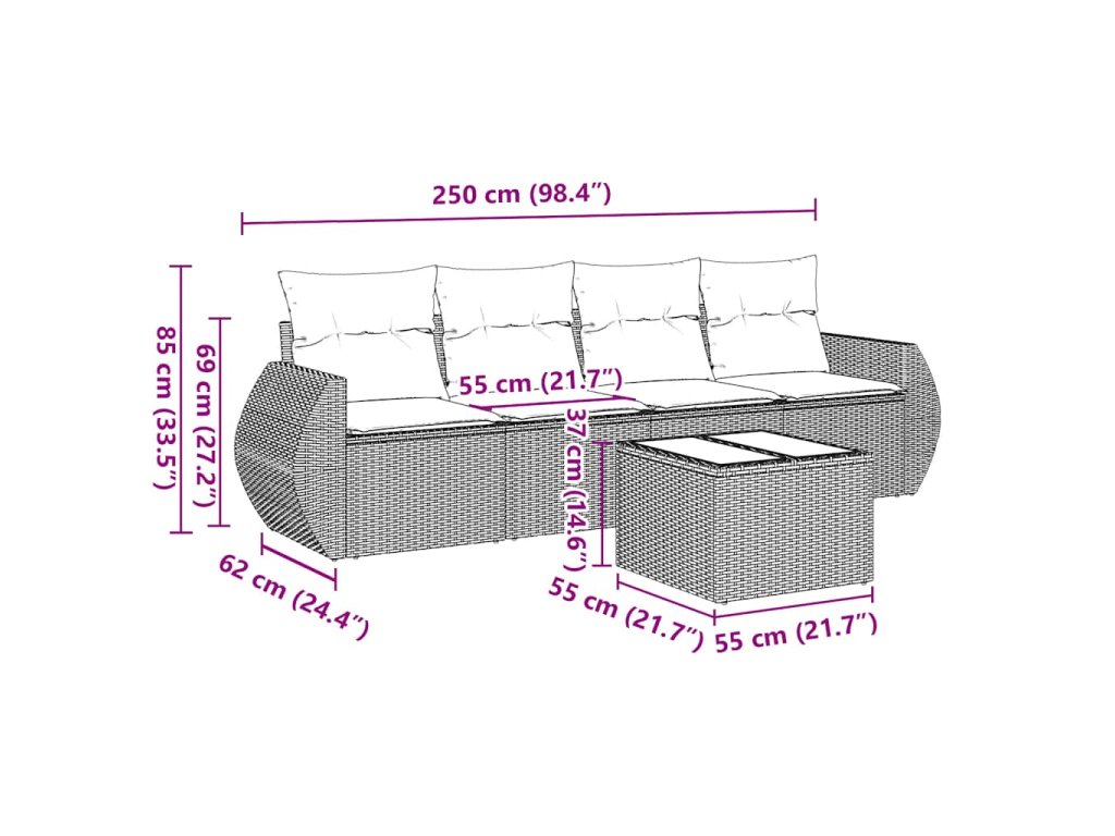 Tato zahradní sedací souprava je dokonalým doplňkem vaší zahrady, terasy nebo dvorku a poskytne vám pohodlné a příjemné místo, kde si můžete povídat s rodinou a přáteli nebo jen tak odpočívat a užívat si pobyt venku.