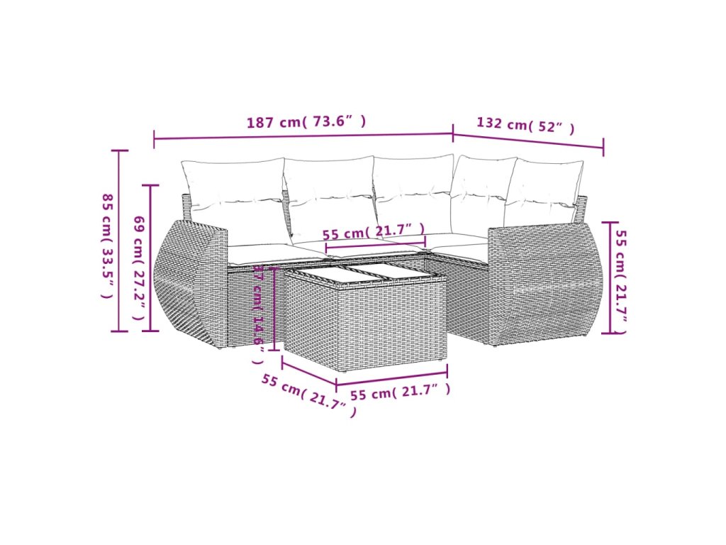 Tato zahradní sedací souprava je dokonalým doplňkem vaší zahrady, terasy nebo dvorku a poskytne vám pohodlné a příjemné místo, kde si můžete povídat s rodinou a přáteli nebo jen tak odpočívat a užívat si pobyt venku.