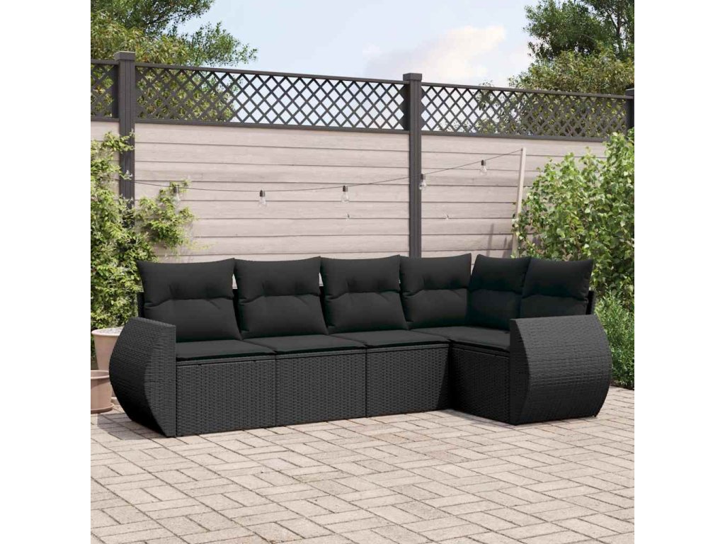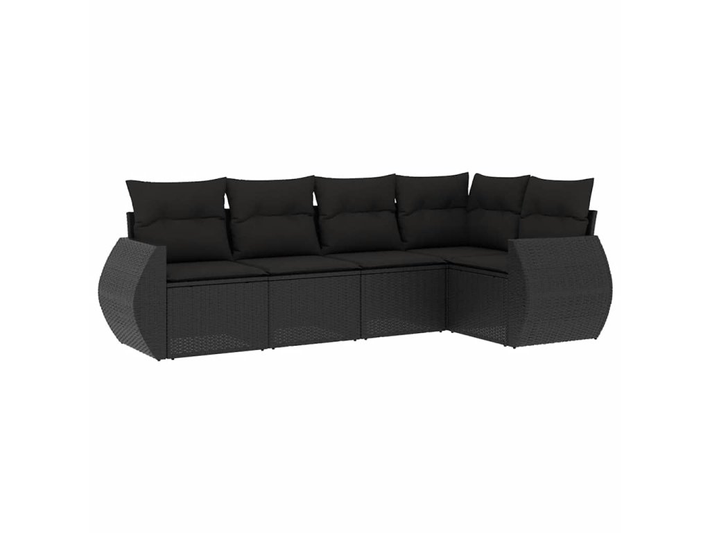 5dílná zahradní sedací souprava s poduškami černá polyratan 3253662