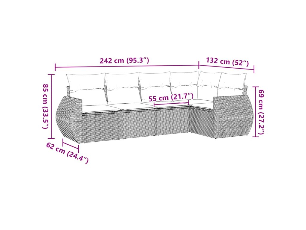 Tato zahradní sedací souprava je dokonalým doplňkem vaší zahrady, terasy nebo dvorku a poskytne vám pohodlné a příjemné místo, kde si můžete povídat s rodinou a přáteli nebo jen tak odpočívat a užívat si pobyt venku.
