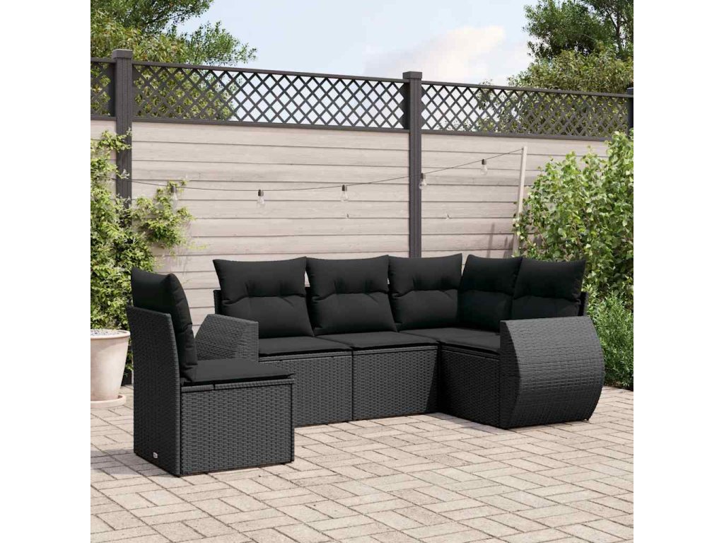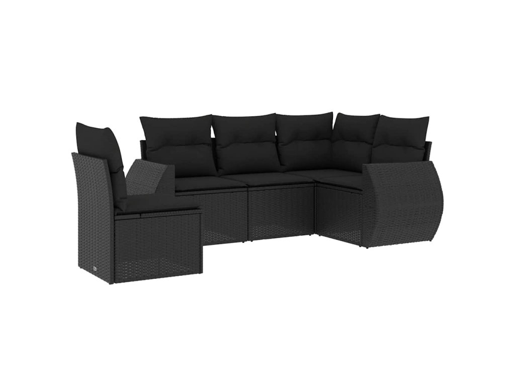 5dílná zahradní sedací souprava s poduškami černá polyratan 3253702