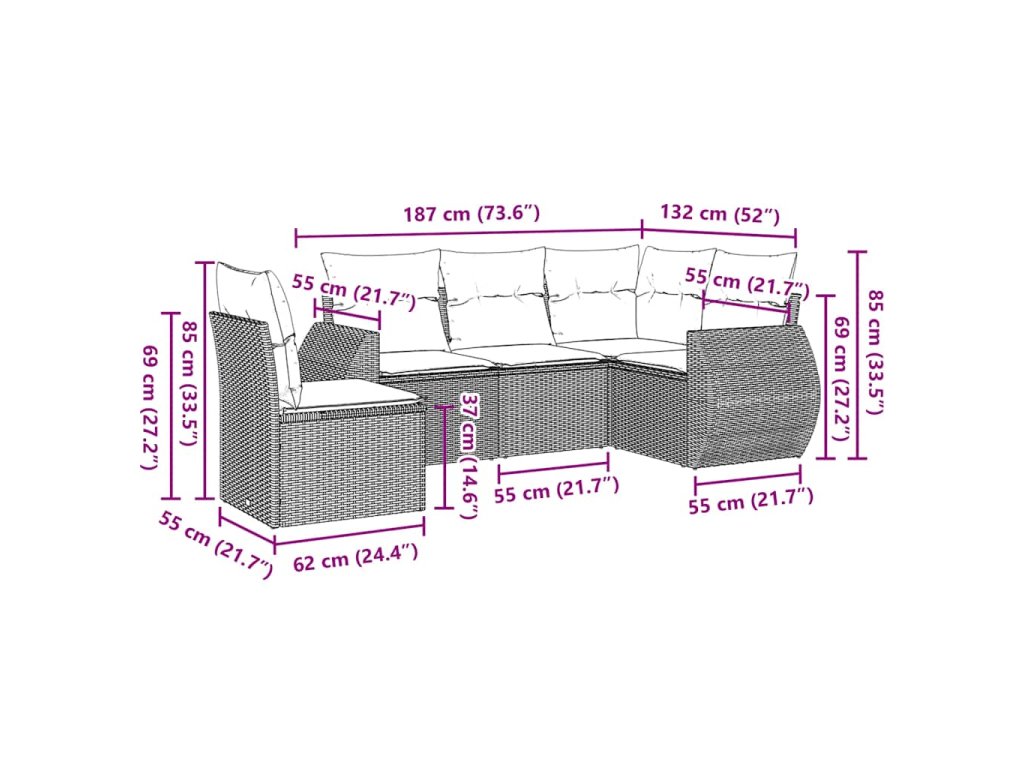 Tato zahradní sedací souprava je dokonalým doplňkem vaší zahrady, terasy nebo dvorku a poskytne vám pohodlné a příjemné místo, kde si můžete povídat s rodinou a přáteli nebo jen tak odpočívat a užívat si pobyt venku.