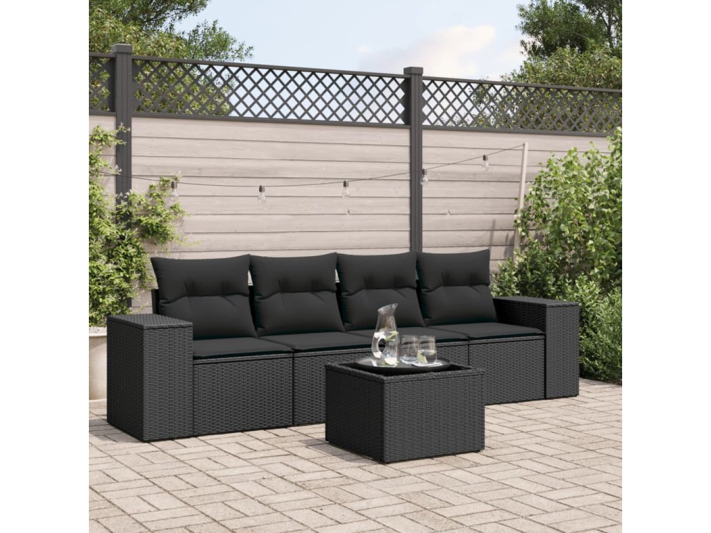 5dílná zahradní sedací souprava s poduškami černá polyratan 3254622