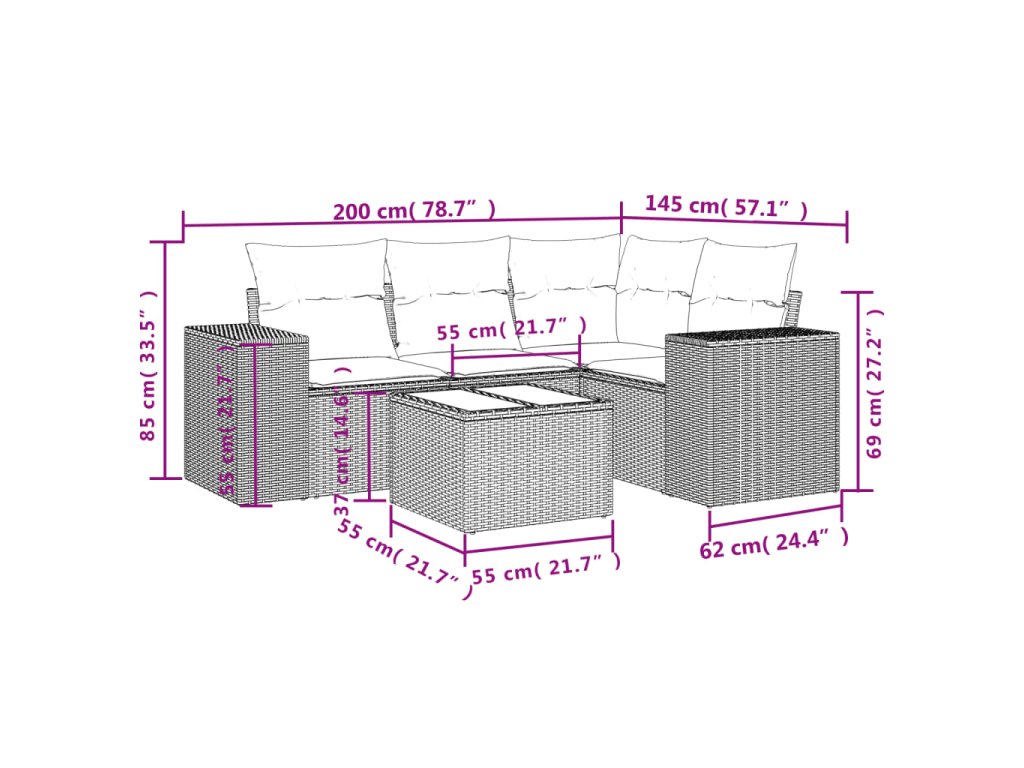 Tato zahradní sedací souprava je dokonalým doplňkem vaší zahrady, terasy nebo dvorku a poskytne vám pohodlné a příjemné místo, kde si můžete povídat s rodinou a přáteli nebo jen tak odpočívat a užívat si pobyt venku.