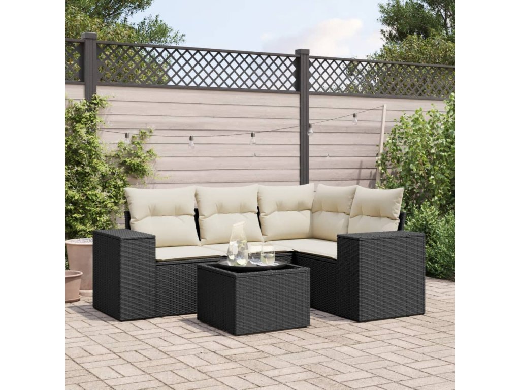 5dílná zahradní sedací souprava s poduškami černá polyratan 3254853