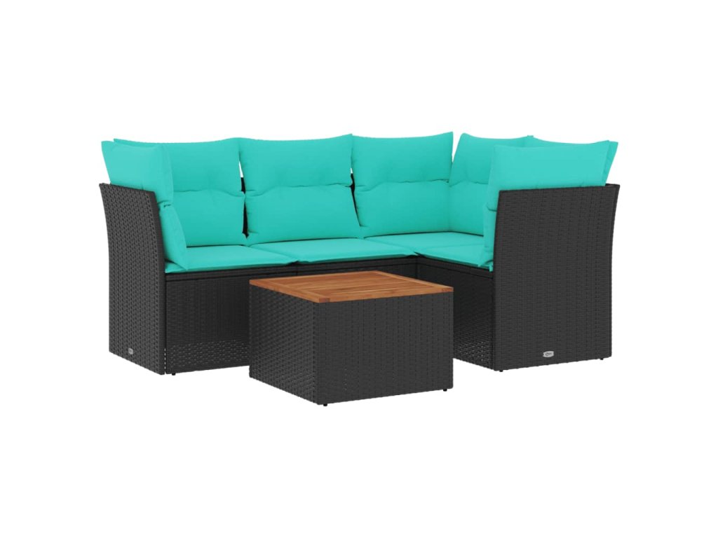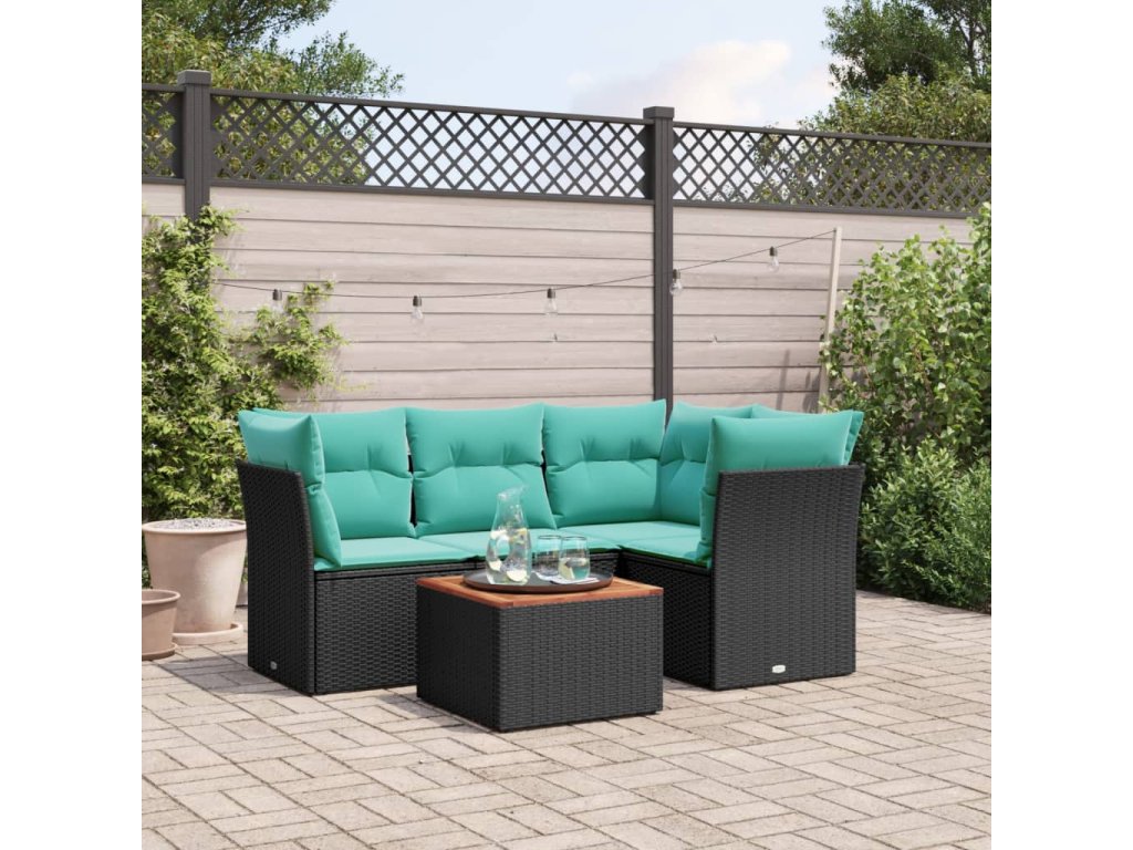 5dílná zahradní sedací souprava s poduškami černá polyratan 3255952