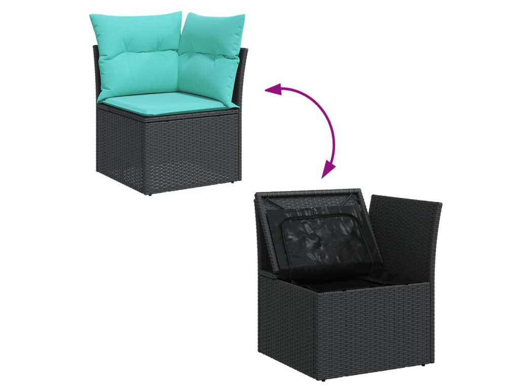 - Úložný prostor s voděodolným vakem: Každý zahradní sedací díl má úložný prostor pod sedákem, který je opatřen voděodolnou vložkou a poslouží vám k ukládání podušek, hraček a dalších věcí. Vnitřní vaky mají horní kryt a lze je bezpečně připevnit k sedákům pomocí suchého zipu, což zaručí větší stabilitu.