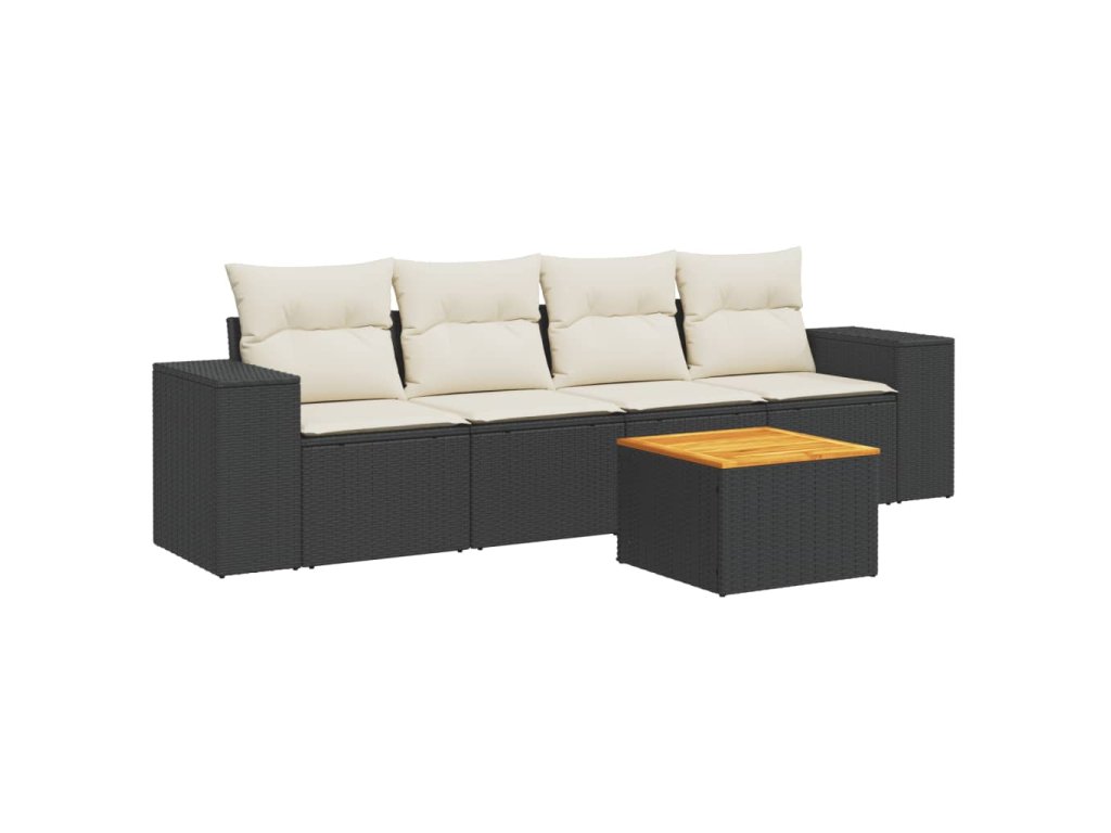 5dílná zahradní sedací souprava s poduškami černá polyratan 3257652