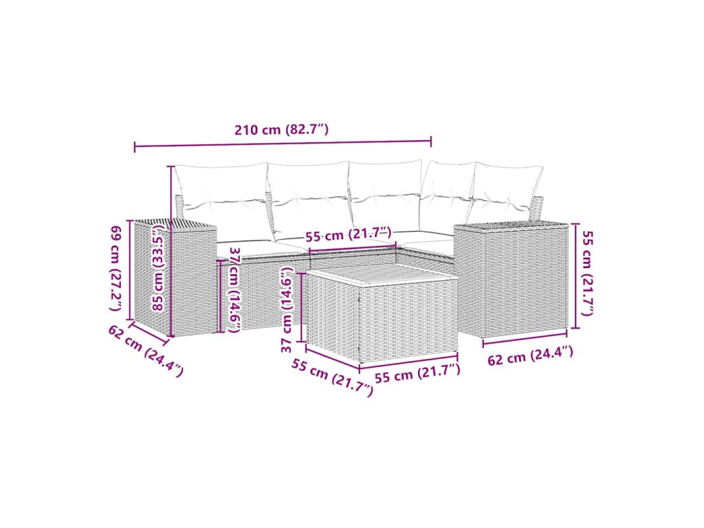 Tato zahradní sedací souprava je dokonalým doplňkem vaší zahrady, terasy nebo dvorku a poskytne vám pohodlné a příjemné místo, kde si můžete povídat s rodinou a přáteli nebo jen tak odpočívat a užívat si pobyt venku.