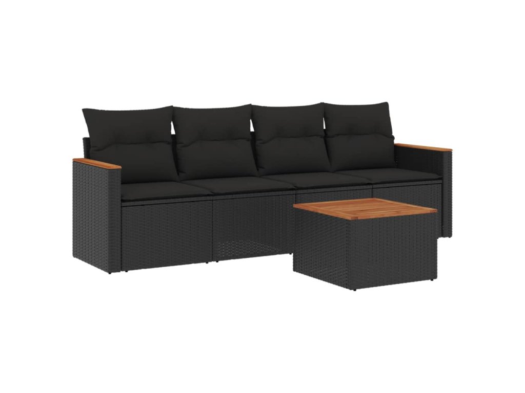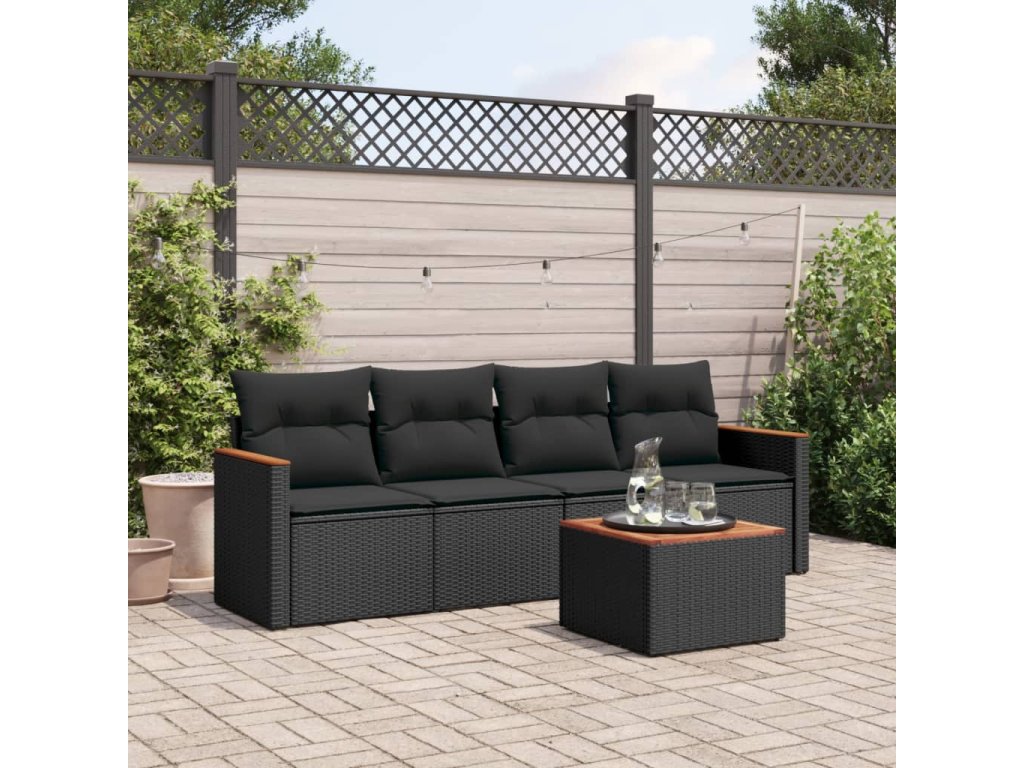 5dílná zahradní sedací souprava s poduškami černá polyratan 3258177