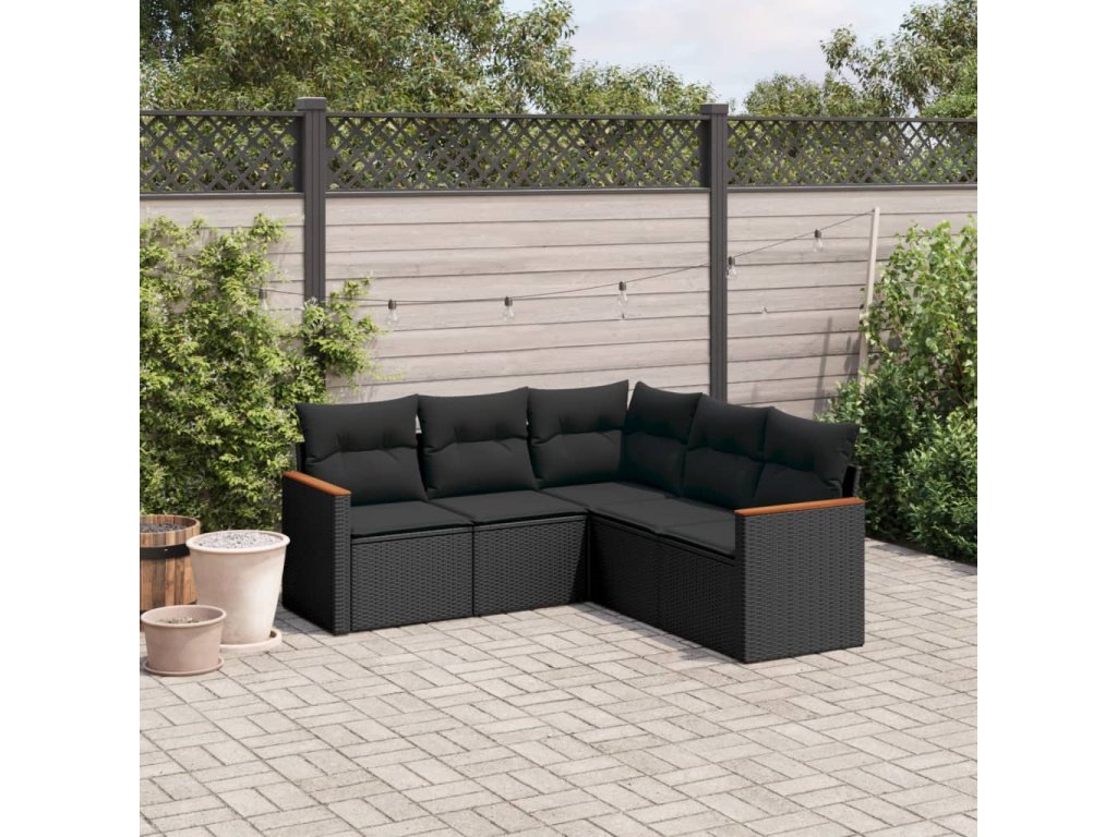 5dílná zahradní sedací souprava s poduškami černá polyratan 3258359