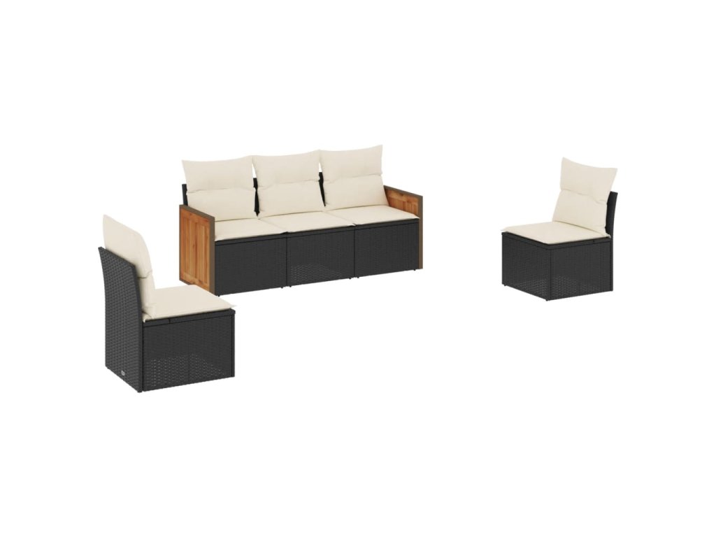 5dílná zahradní sedací souprava s poduškami černá polyratan 3259928