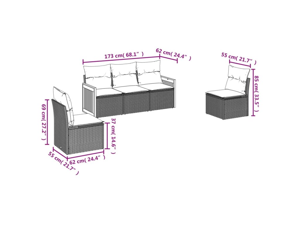 Tato zahradní sedací souprava je dokonalým doplňkem vaší zahrady, terasy nebo dvorku a poskytne vám pohodlné a příjemné místo, kde si můžete povídat s rodinou a přáteli nebo jen tak odpočívat a užívat si pobyt venku.