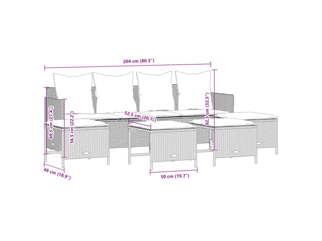 Tato zahradní sedací souprava je dokonalým doplňkem vaší zahrady, terasy nebo dvorku a poskytne vám pohodlné a příjemné místo, kde si můžete povídat s rodinou a přáteli nebo jen tak odpočívat a užívat si pobyt venku.
