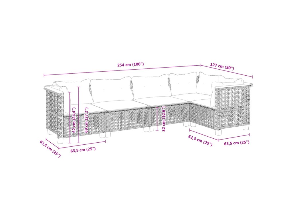 5dílná zahradní sedací souprava s poduškami černá polyratan 3261812