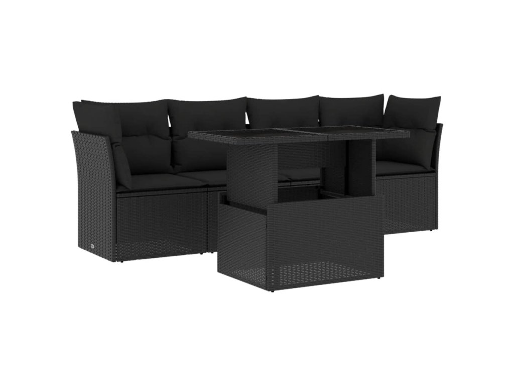 5dílná zahradní sedací souprava s poduškami černá polyratan 3266345