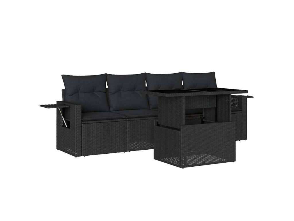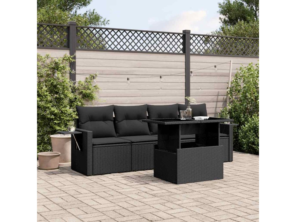 5dílná zahradní sedací souprava s poduškami černá polyratan 3267725