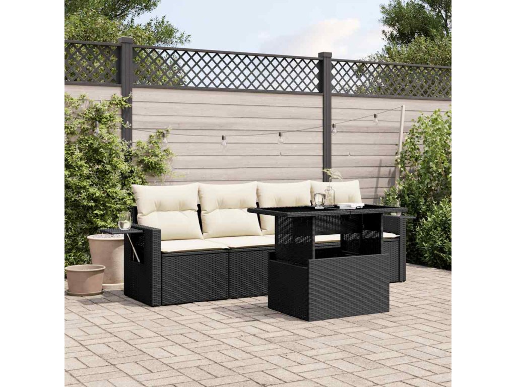 5dílná zahradní sedací souprava s poduškami černá polyratan 3267726
